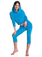 ( počet produktů: 5 )Dámská velurová tepláková souprava Mikina s kapucí + 3/4 kalhoty tyrkysová