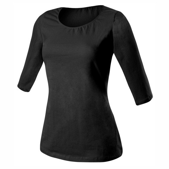 Dámské základní tričko. Vyrobeno z měkké, pružné tkaniny (95 % bavlna + 5 % elastan), která umožňuje neomezený pohyb těla. Model s 3/4 rukávy, přiléhající k tělu. Tričko je jednobarevné, takže může být základem mnoha vzhledů. Lze ji nosit samostatně nebo jako doplněk k bundě, svetru apod.