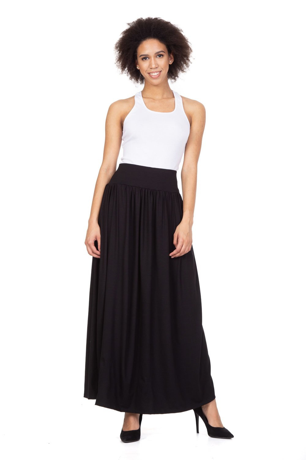 Model s dlouhou sukní. V pase je široký pruh látky, který zvýrazňuje boky. Měkký a splývavý materiál, který krásně zvýrazní každý pohyb. Model bez kapes. Elastická výztuha v pase zabraňující sklouzávání sukně.