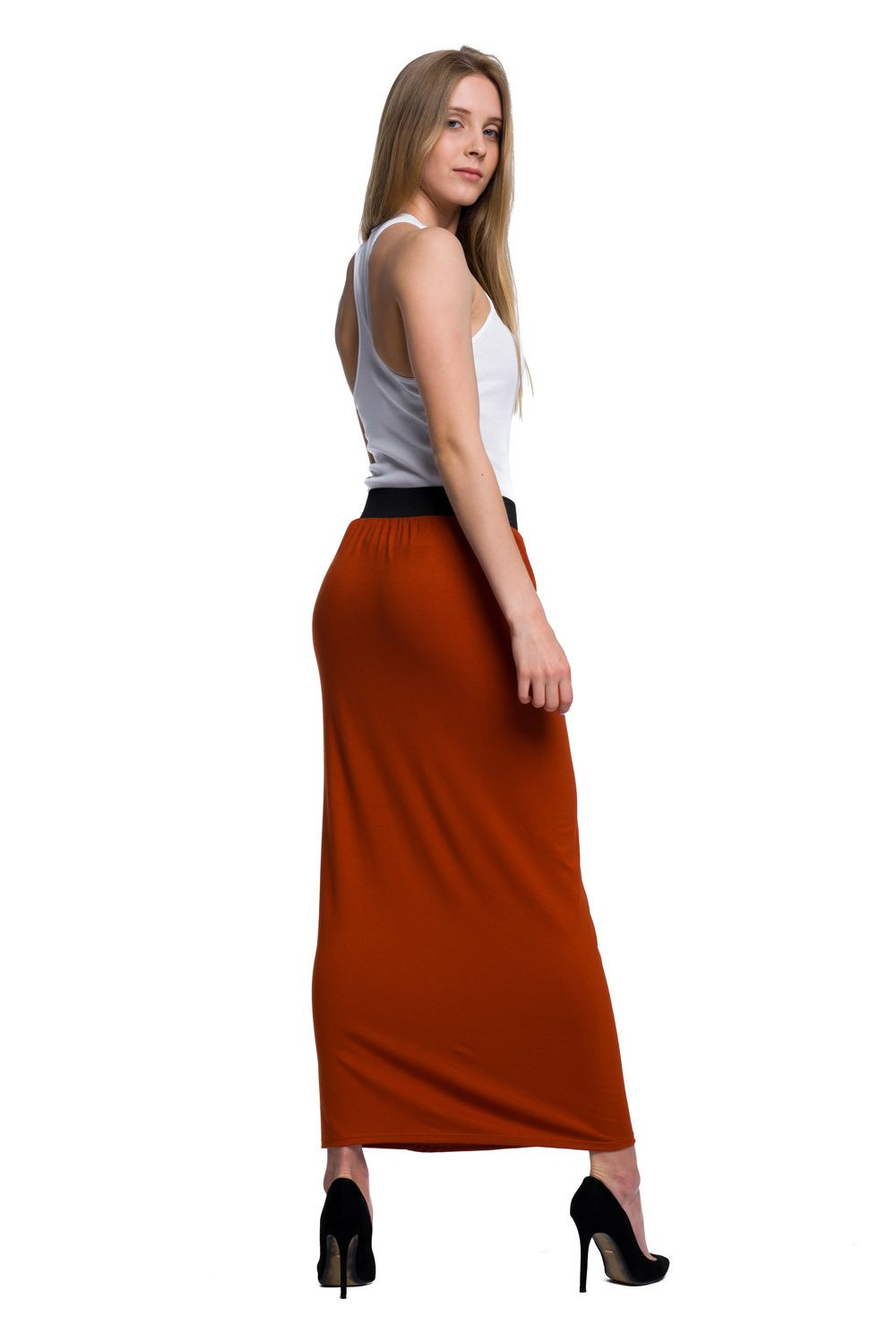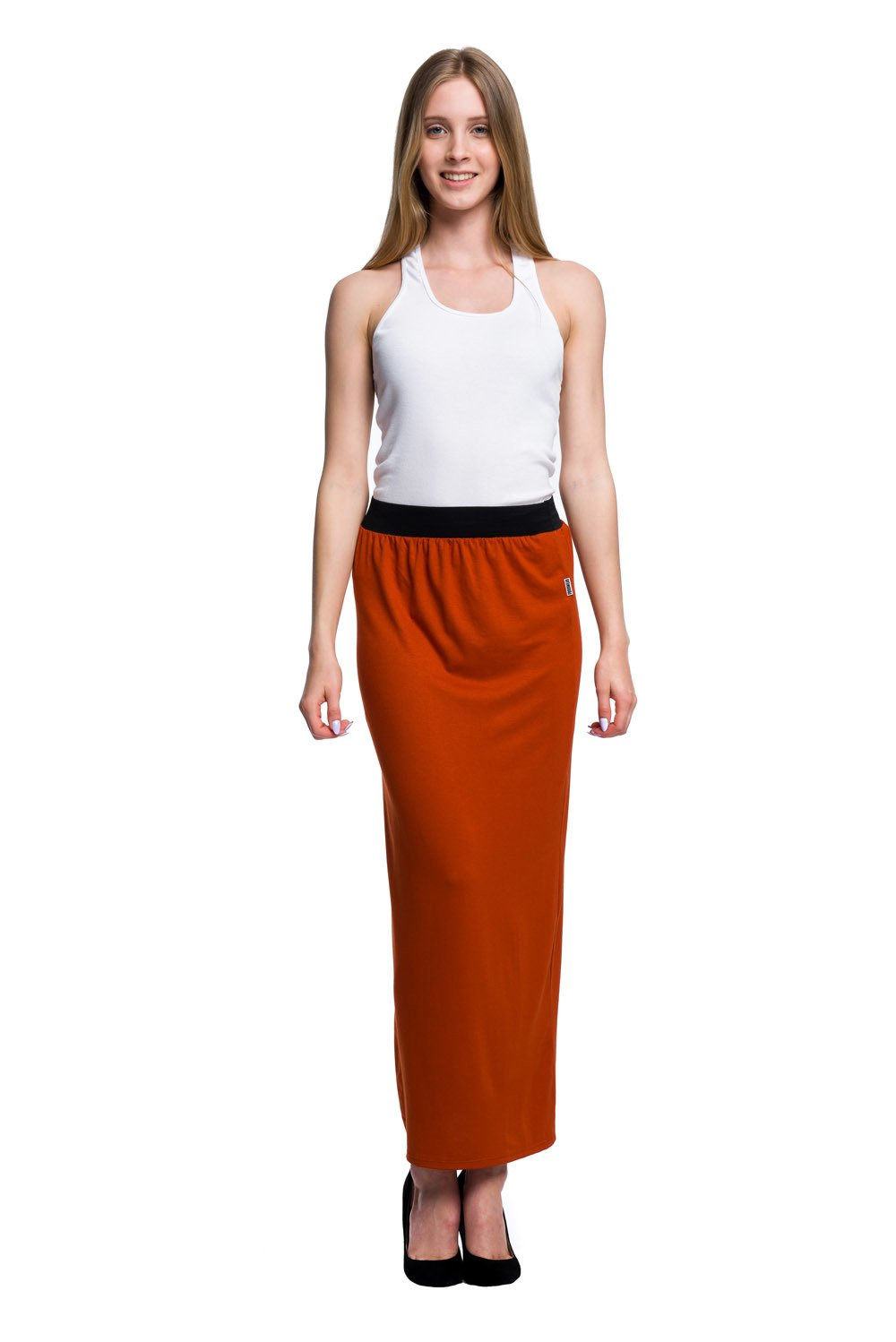 Viskózová sukně MAXI ve fitted střihu - rezavá
