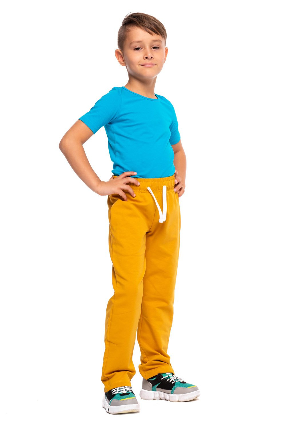 Tepláky - model pro celou rodinu. Dlouhé, rovné nohy. Elastický pas a stahovací šňůrka. Spodní části nohavic zakončené rovně, ohrnuté nahoru. Model má vložené kapsy.