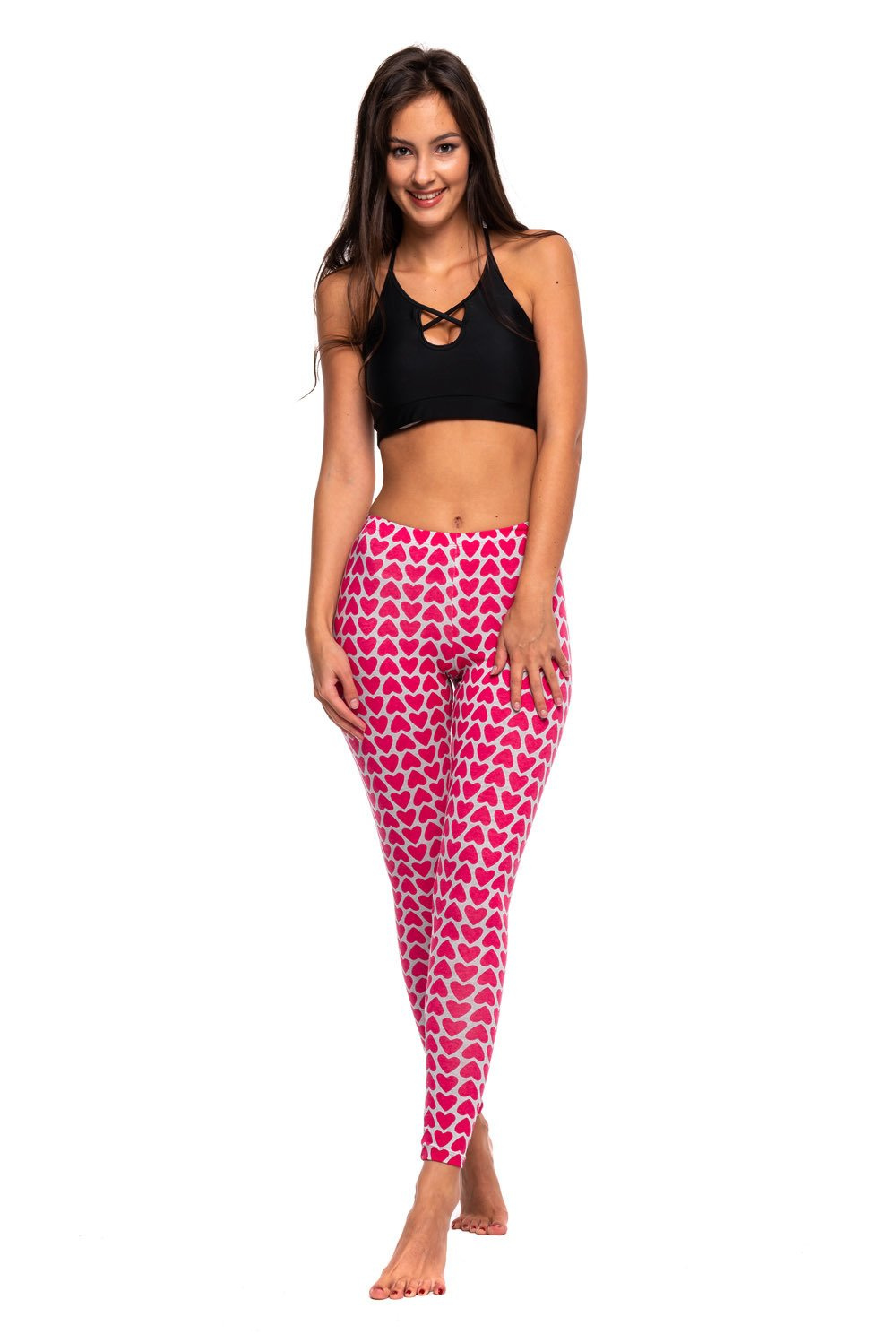 Dámské sportovní legíny se vzorem HEART fuchsiově šedé