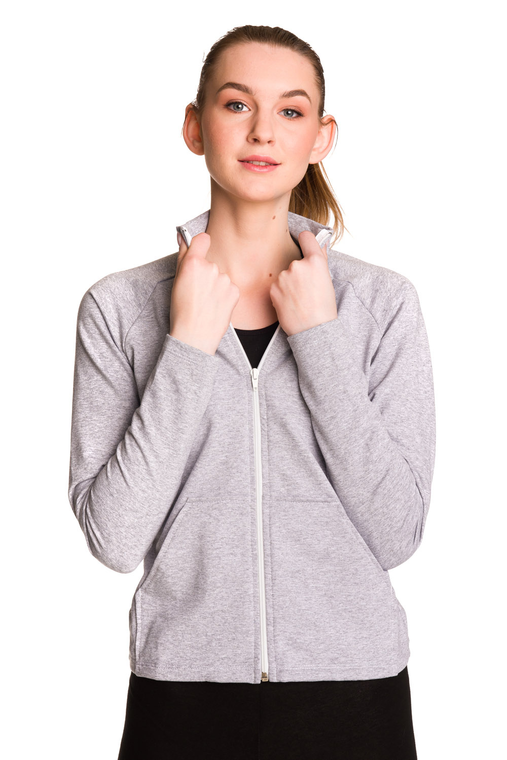 Mikina se stojáčkem, zipem a kapsami šedá melange