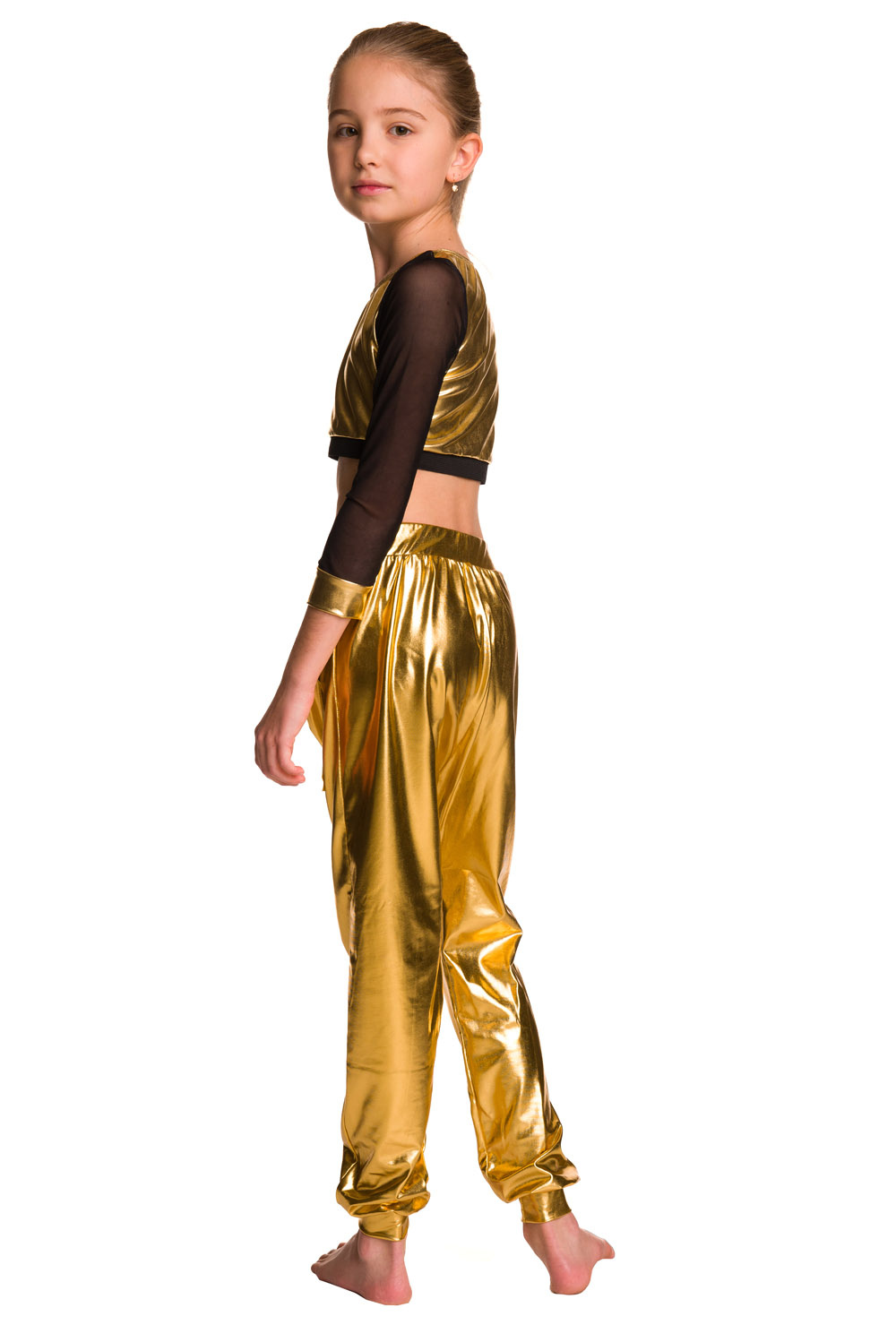 Dámský sportovní top pro dívky s kovovými třpytkami a dlouhými síťovanými rukávy zlatý