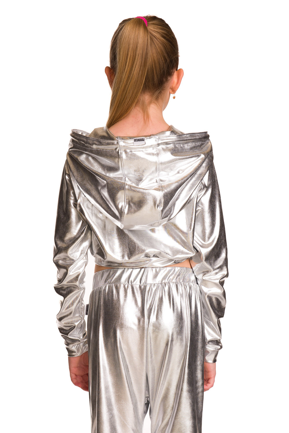 Dámská metalická třpytivá mikina s velkou kapucí pro výkonnostní stříbro