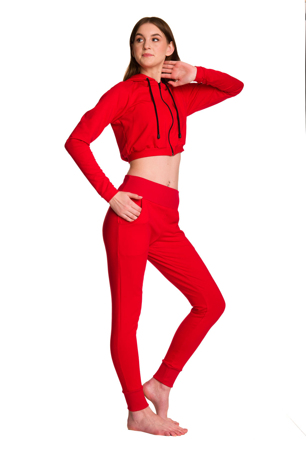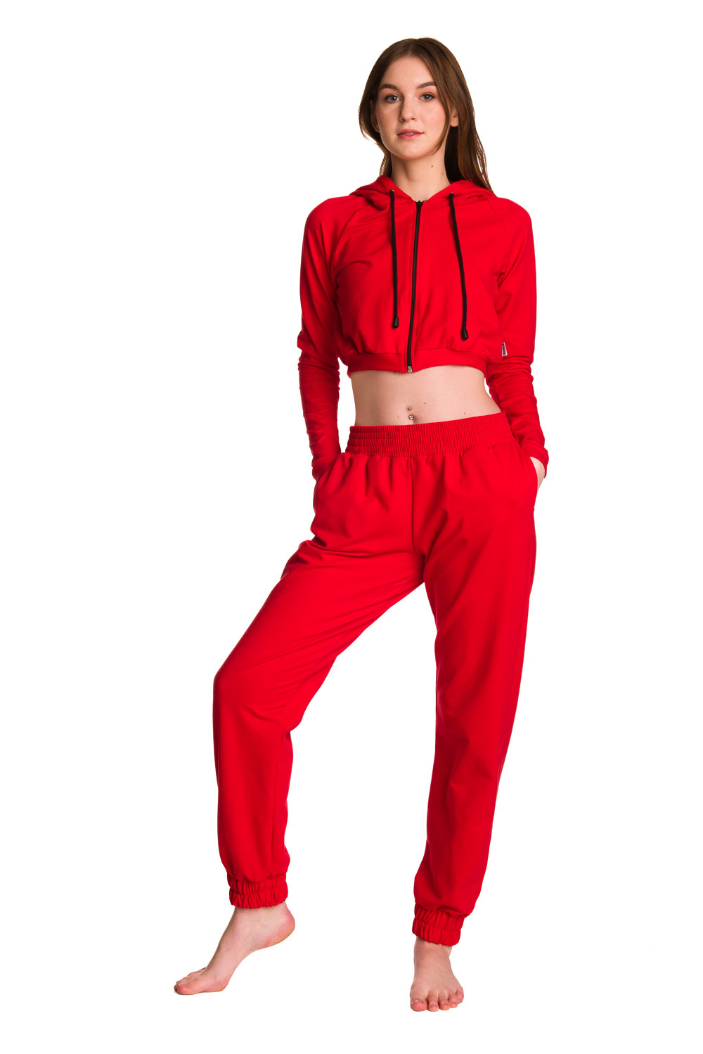 Dámská krátká mikina s velkou kapucí baby girl červená