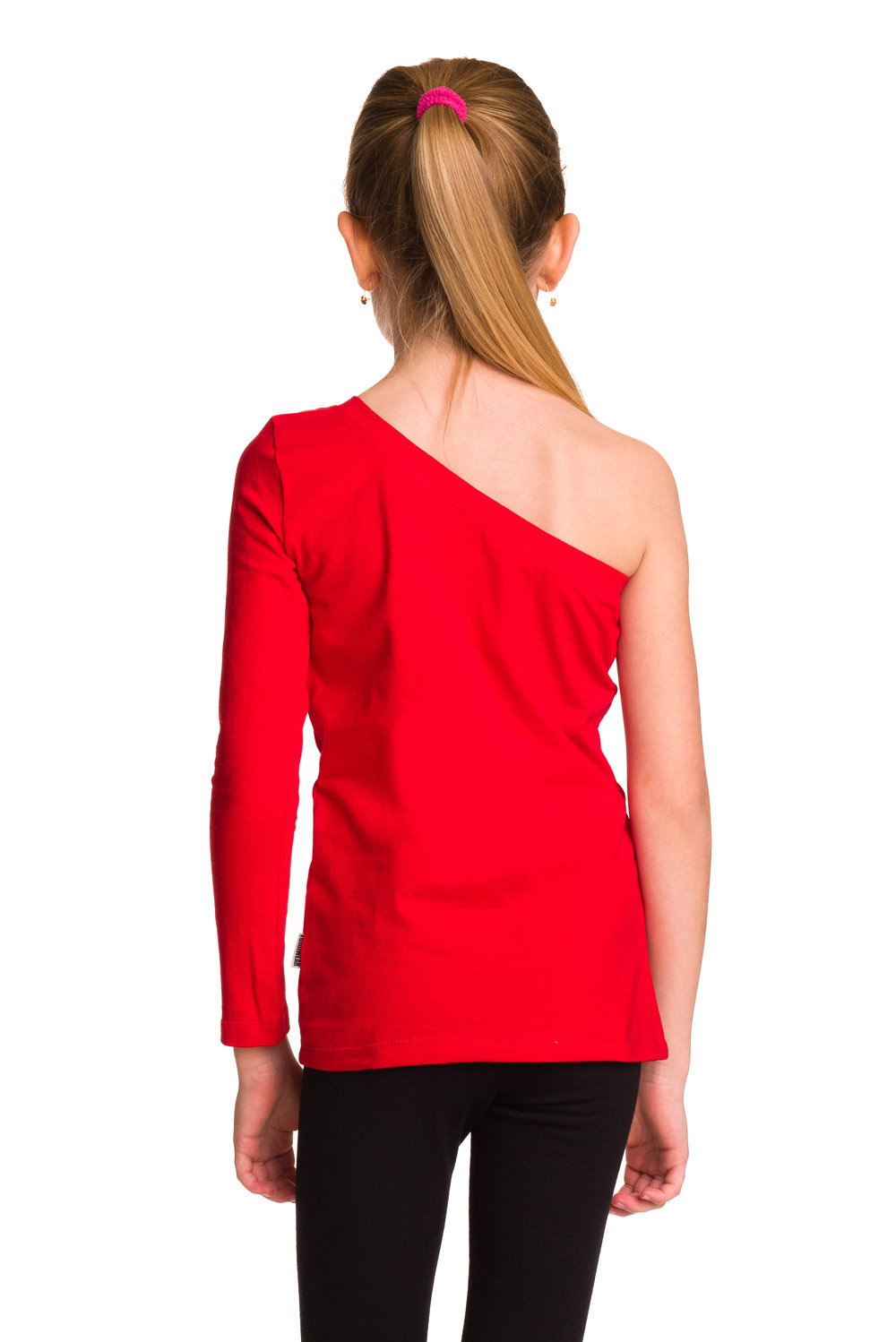 Asymetrická bavlněná halenka s dlouhým rukávem a šikmým výstřihem červená