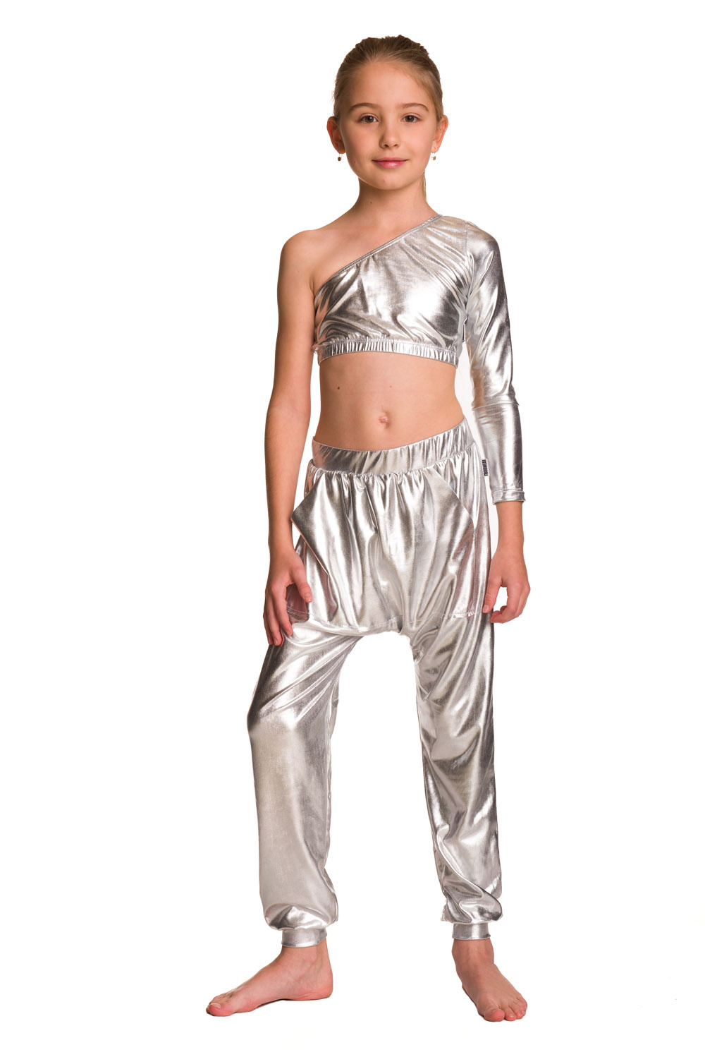 Dětské metalické kalhoty s pumpy pro výkonnostní stříbro